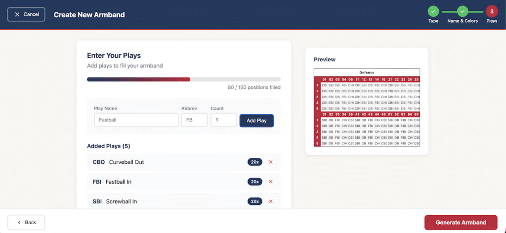 The simplest way to build custom play-call armbands for your baseball or softball team.